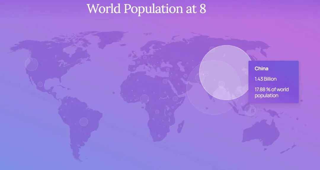 联合国人口基金会制作的“世界人口达到80亿”主题网页显示,中国的总人口约有14.13亿,占世界总人口的17.88%。