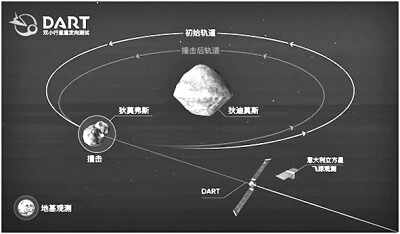 “狄迪莫斯”双小行星系统中包括两颗小行星,主星“狄迪莫斯”直径约780米,子星“狄莫弗斯”直径约160米,两者距离约1.2千米,共同运行在环绕太阳运行的轨道上。子星“狄莫弗斯”像一台钟表一样,约每11.9小时环绕直径约780米的主星运行一圈。“双小行星重定向测试”任务通过“迎头撞击”改变子星相对主星的绕转轨道,预期使其绕转周期缩短约10分钟。