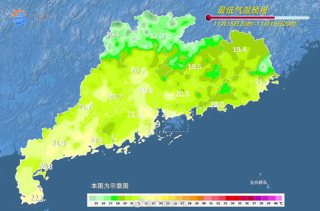 19日,肇庆北部、韶关、清远、河源北部阴天有小雨,其余市县多云间阴天,局部有小雨。最低气温:粤北市县16℃~19℃,粤西沿海市县22℃~25℃,其余市县20℃~22℃。