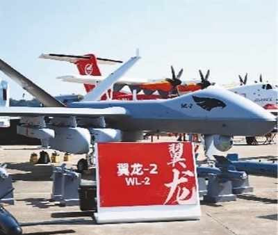 在珠海举行的第十四届中国航展上展出的翼龙-2无人机。