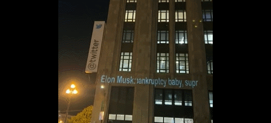 综合美媒报道,推特新掌门埃隆·马斯克对员工下达“最后通牒”之后,当地时间11月17日晚,一位活动人士在美国旧金山推特总部大楼上投影,嘲讽推特要完了,还给马斯特打上了一连串形容词:“破产宝贝”“终极寄生虫”“平庸巨婴”“太空凯伦”……这段嘲弄辱骂马斯克的投影视频在推特疯传,播放量已突破1050万次。