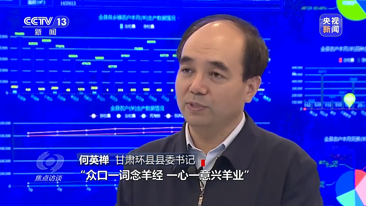 甘肃环县县委书记 何英禅:巩固脱贫攻坚成果,靠什么来巩固?就靠产业发展来巩固。全县提出了“众口一词念羊经,一心一意兴羊业”,最终实现“千家万户发羊财”。经过这几年的发展,截至去年年底,我们的羊存栏量突破了315万只,也就是人均10只羊,老百姓来自羊产业的收入占到了当年农民人均纯收入的半壁江山。