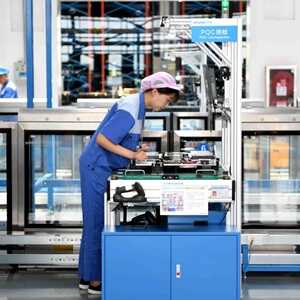 在浪潮集团的服务器智能工厂里,工业互联网平台助力下的智能锁附机器人飞速运转,8分钟可自动锁完130颗螺丝,车间大屏实时显示着各类生产数据。工厂还可同时生产数十类产品,实现大规模定制,生产效率提升30%。