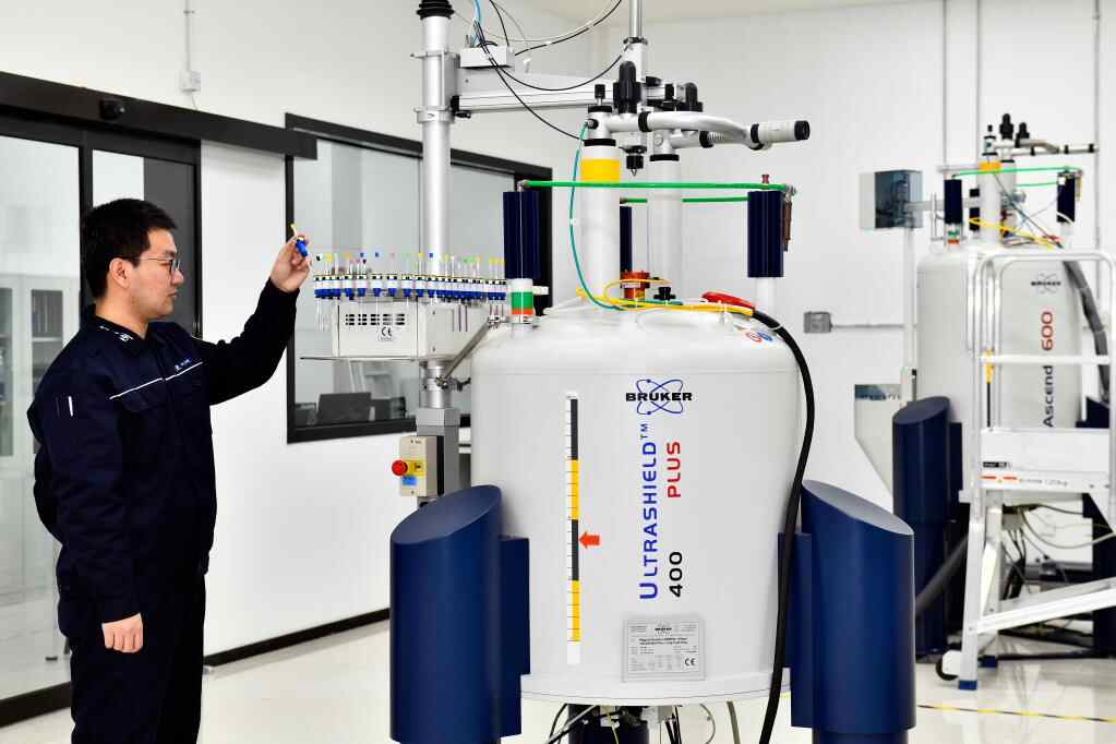 在万华化学集团磁山全球研发中心,科研人员在做实验。(新华社记者郭绪雷 摄)