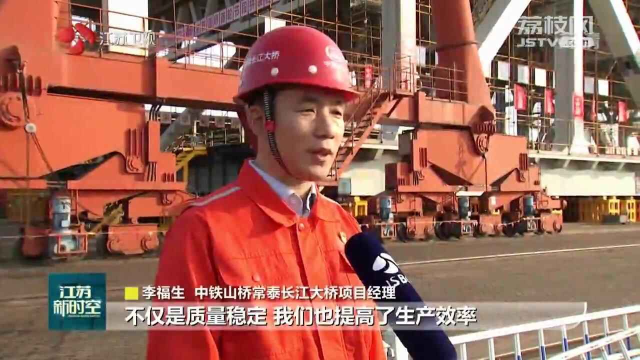 中铁山桥常泰长江大桥项目经理李福生介绍,不仅是质量稳定,也提高了生产效率,现在产品生产效率比原来提高了三、四倍。