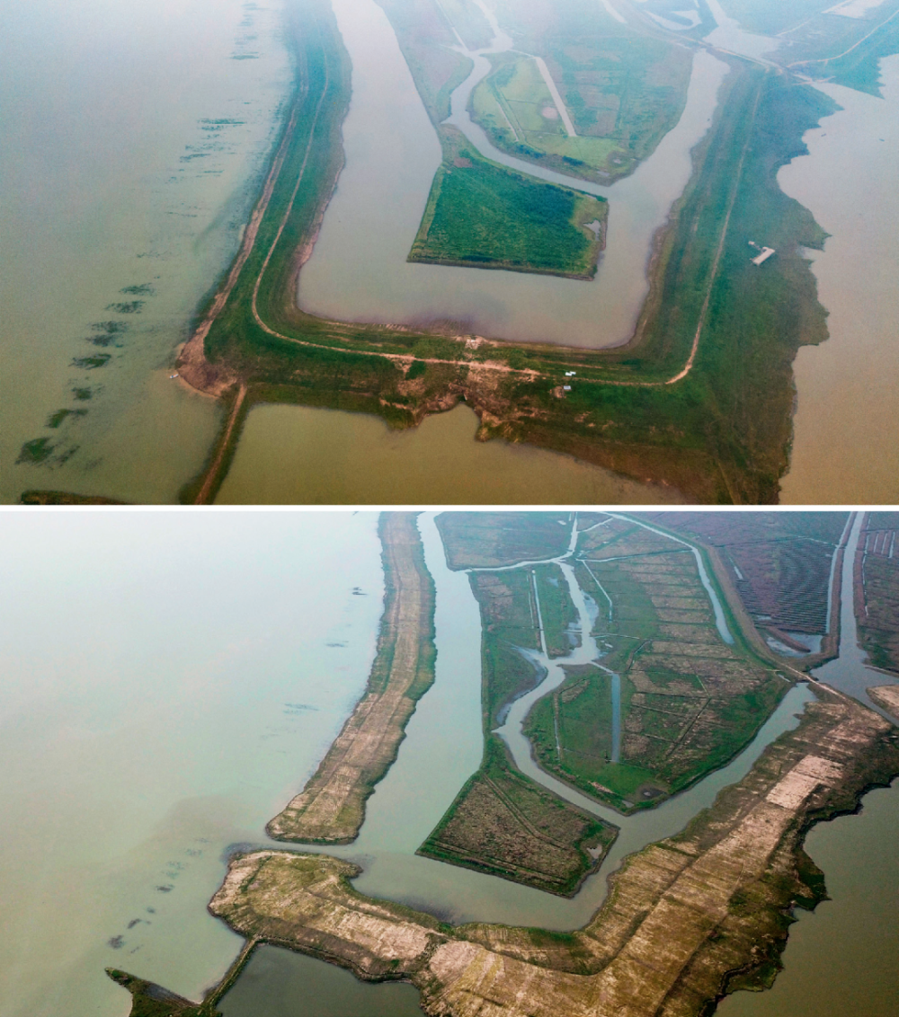 然而曾有一段时间,洞庭湖伤痕累累。抢夺湖砂的争斗频频上演,严重破坏自然生态、毒化社会生态。过度捕捞及日益猖獗的非法捕捞,导致洞庭湖渔业资源严重衰退。大大小小的纸浆生产企业布满湖区,大量高污染废水直排大湖。2013年到2016年,洞庭湖11个可比断面中,5个水质下降,4个由Ⅲ类恶化至Ⅳ类。
