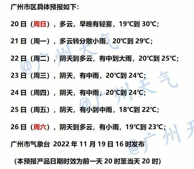 广州方面,20日白天仍有阳光,晚上有轻雾,湿度大,局部有零星的雨。