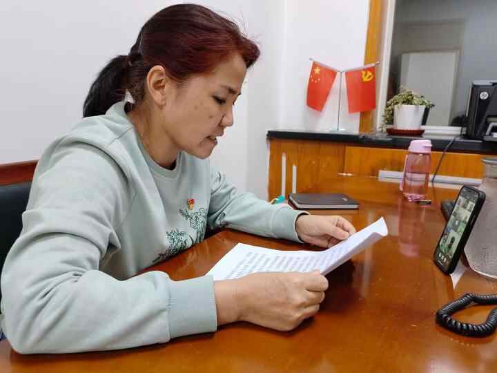 热孜万古丽·沙吾提通过“网上小课堂”向社区居民宣传宣讲党的二十大精神。(受访者供图)