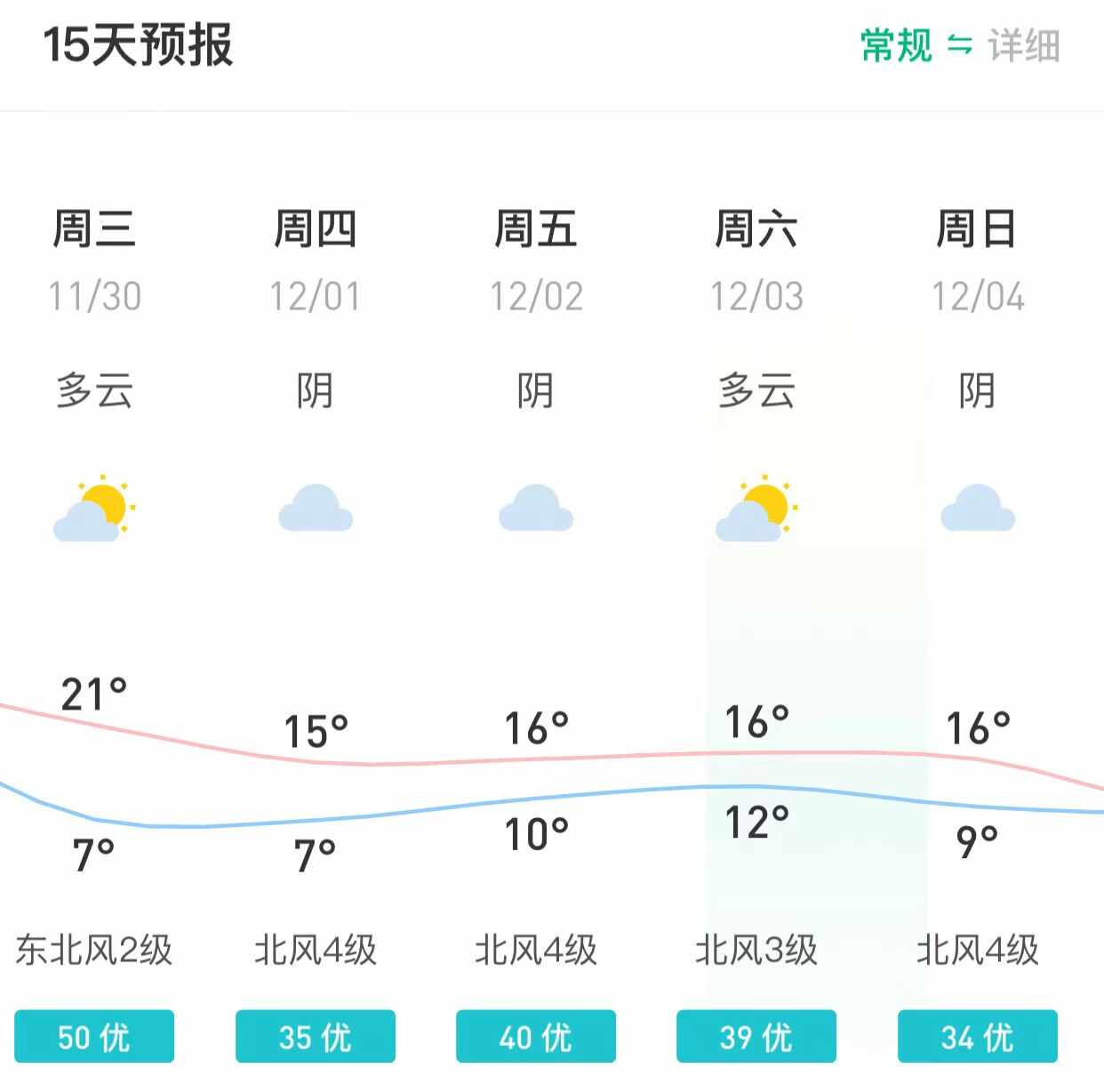 天气预报APP“中国天气”对本月底广州气温的预报(注:仅为中长期数值预报,可能和最终天气实况有偏差)