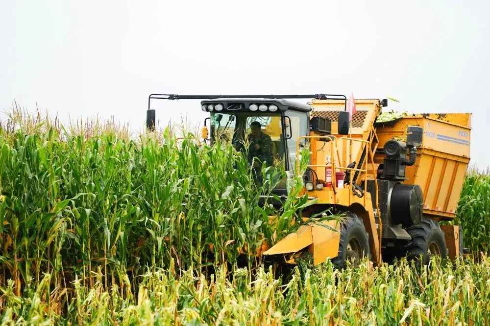 黑龙江省齐齐哈尔市依安县,农机正在收割玉米。新华每日电讯记者 魏弘毅 摄
