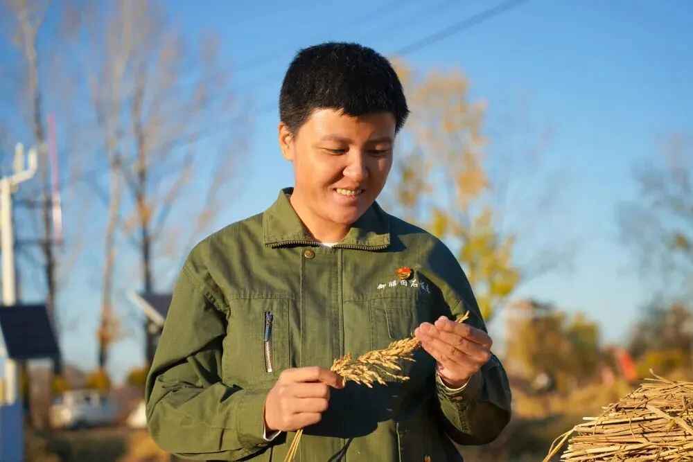 黑龙江省宁安市,陈雨佳在田里查看稻谷晾晒情况。新华每日电讯记者 魏弘毅 摄