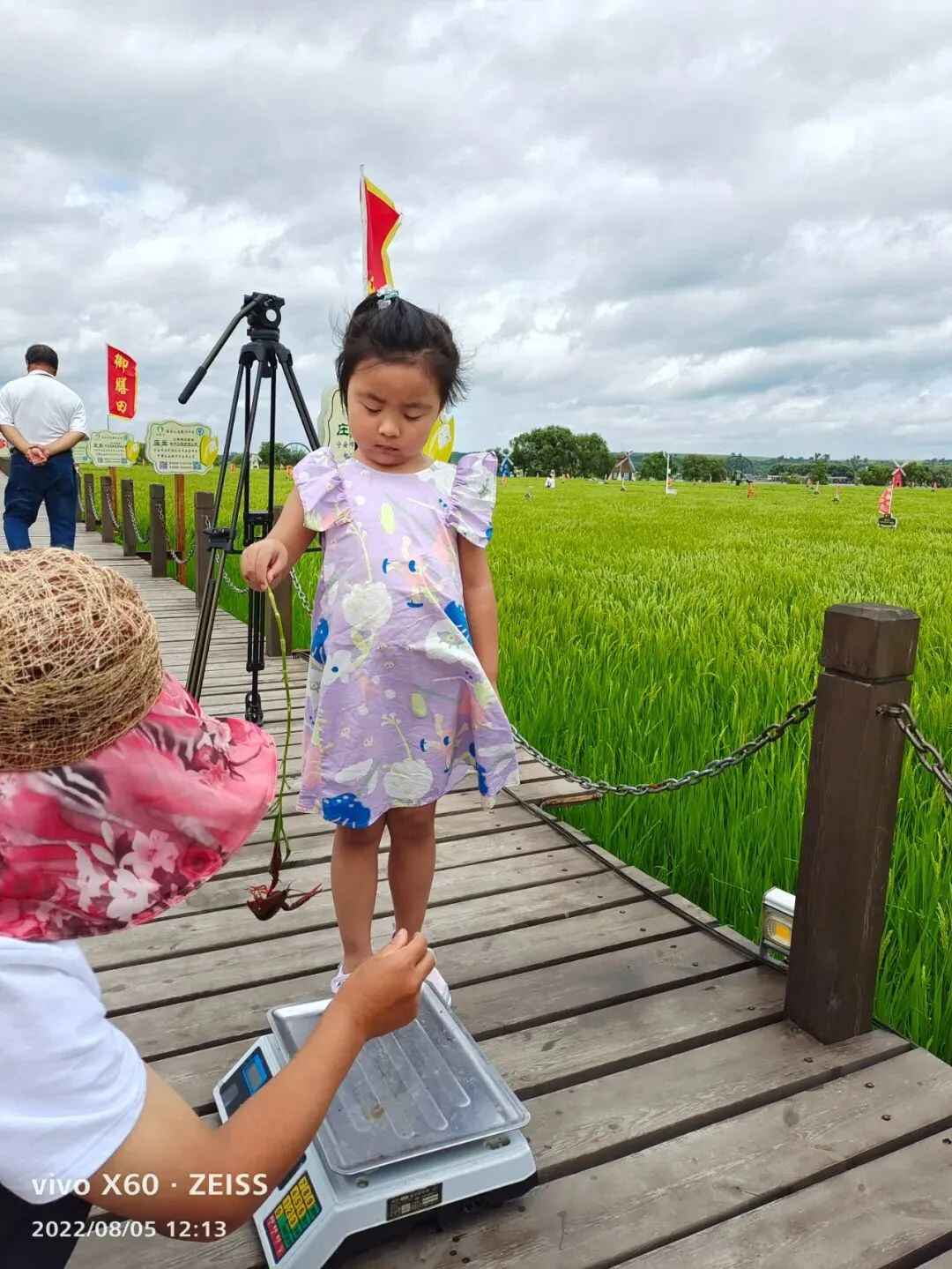 陈雨佳的女儿在玩稻田里捞出的小龙虾。受访者供图