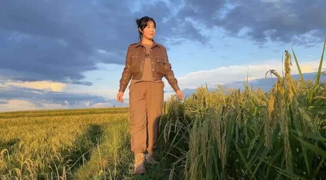 “米雪新农人”张雪行走在家乡的稻田里。受访者供图