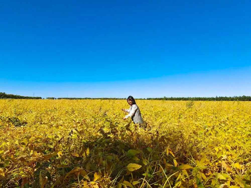 90后东北新农人邢碧玉在田间查看大豆长势。新华每日电讯记者 陈聪 摄