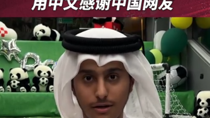 世界杯揭幕赛上,卡塔尔王子因撞脸“馄饨皮”吉祥物,被中国网友制成表情包,走红网络。24日早些时候,这位15岁的卡塔尔王子专门录视频给中国的粉丝。