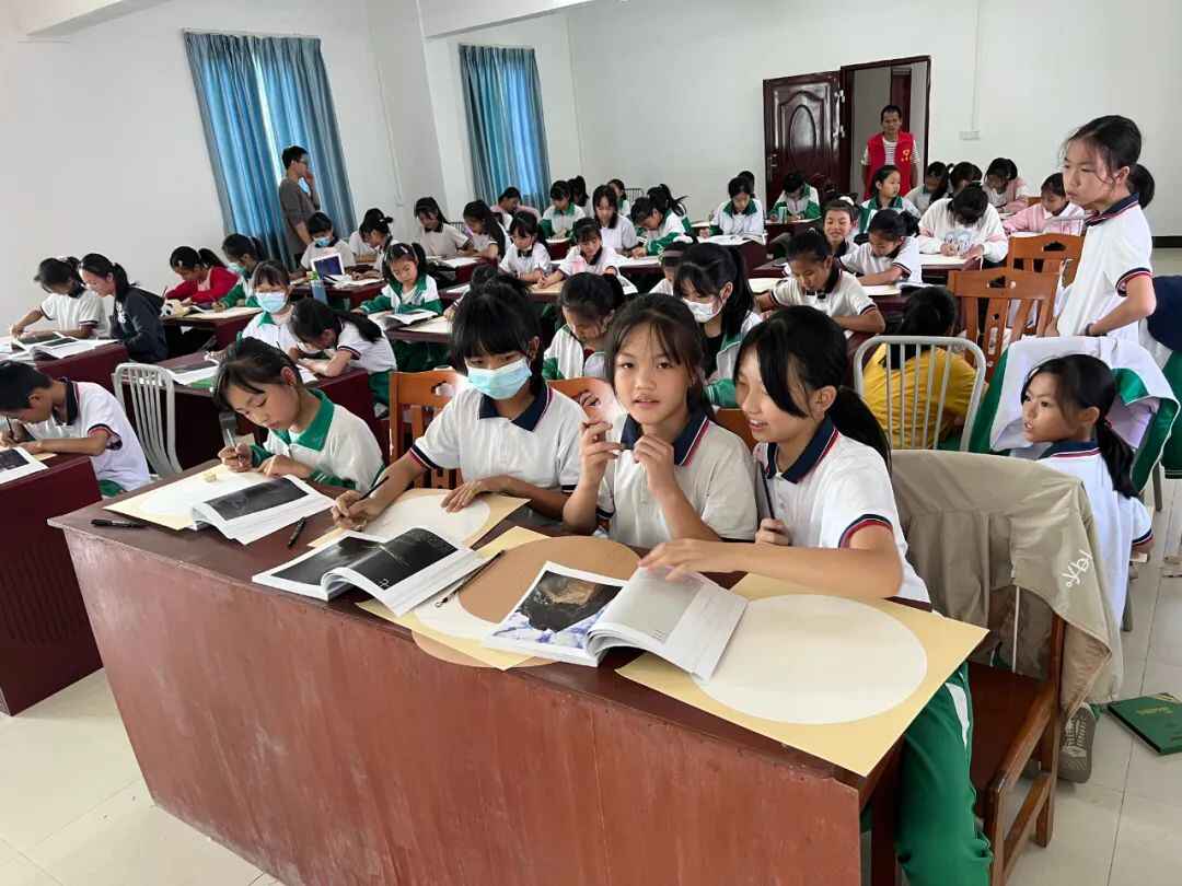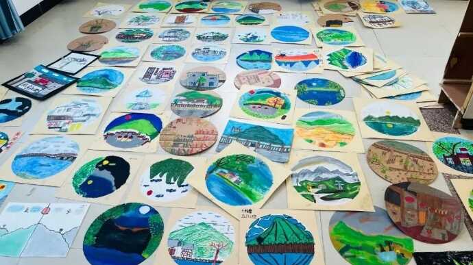 画得开心,既能跟着老师学习画画的知识,又画出了家乡的风景。