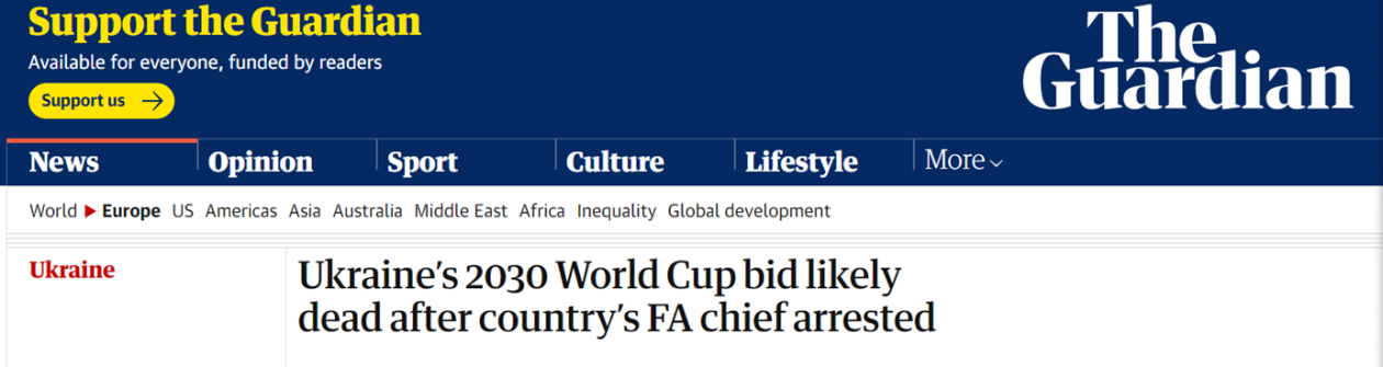 足协主席被捕,乌克兰申办世界杯计划或告吹