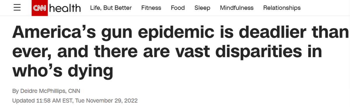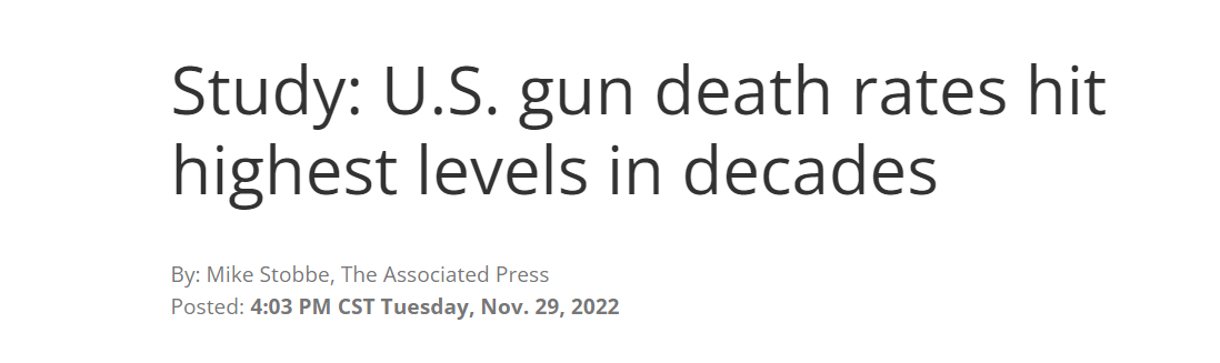 美联社报道,这项新研究的作者们通过对美国疾病控制和预防中心的数据分析,发现过去32年来超过110万人死于涉枪事件,这一数字与过去三年美国因新冠死亡的人数大致相同。