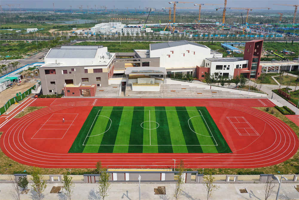 史家胡同小学雄安校区项目操场(2022年8月17日摄,无人机照片)。新华社记者 朱旭东 摄