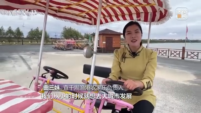 查干湖渔港农家乐负责人 曲三妹:“我的父母靠打鱼为生,我们小的时候就想去大城市发展。现在随着查干湖的发展,机会越来越多,我们可以守着家乡实现自己的梦想,并且可以守在父母身边,我觉得是一件特别幸福的事。”