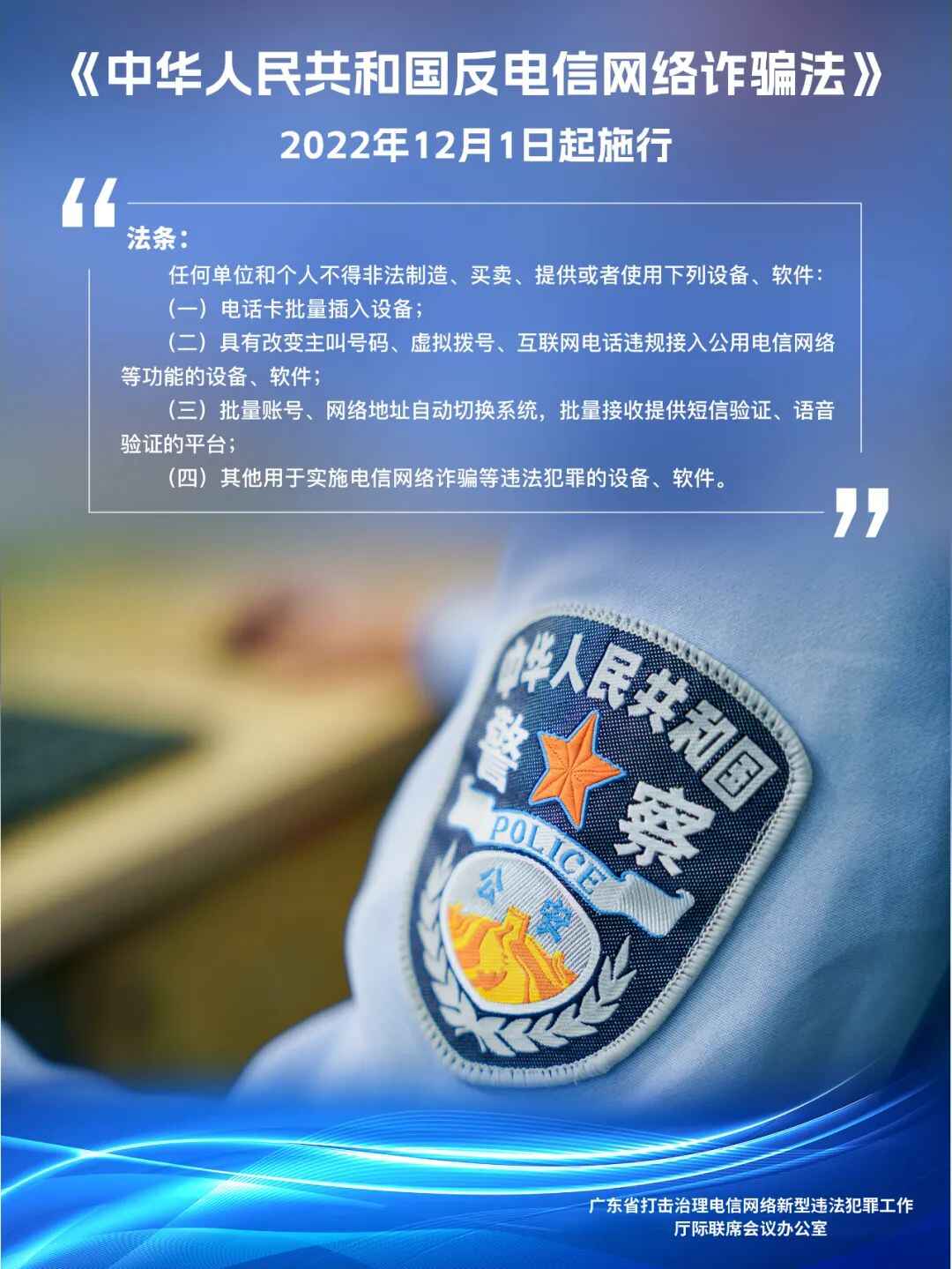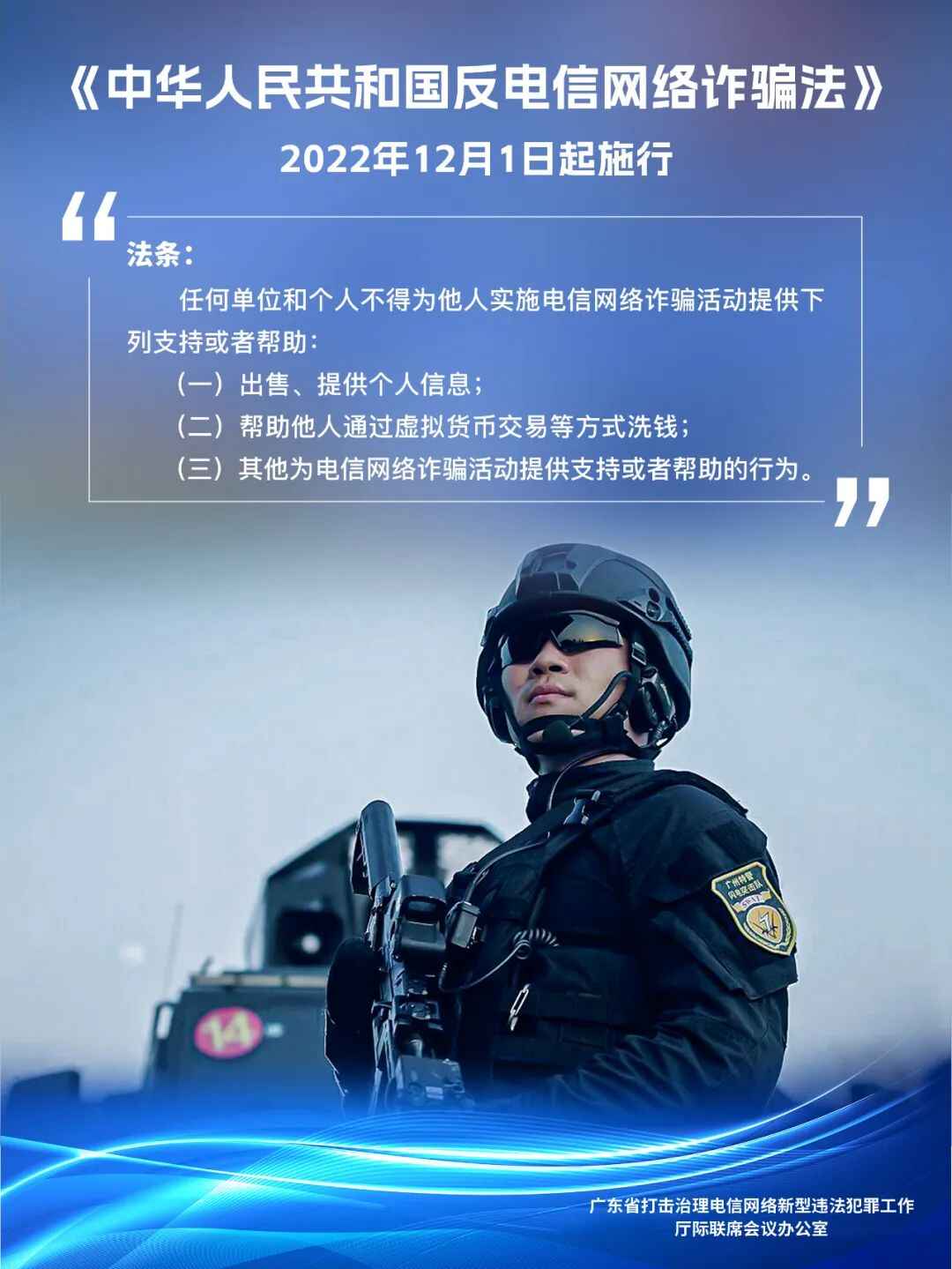 12月1日起,《中华人民共和国反电信网络诈骗法》正式实施。