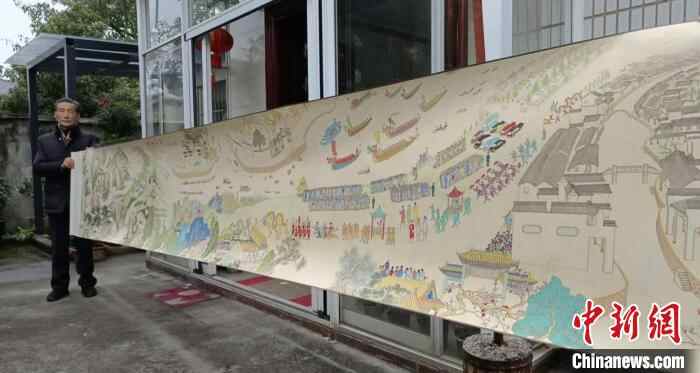 耄耋老人历时4年绘就家乡版《清明上河图》