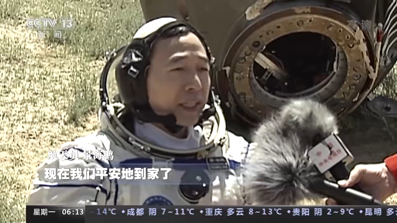 航天员 聂海胜:脚下这片土地对我来说很熟悉也很亲切,回家的感觉真的好。