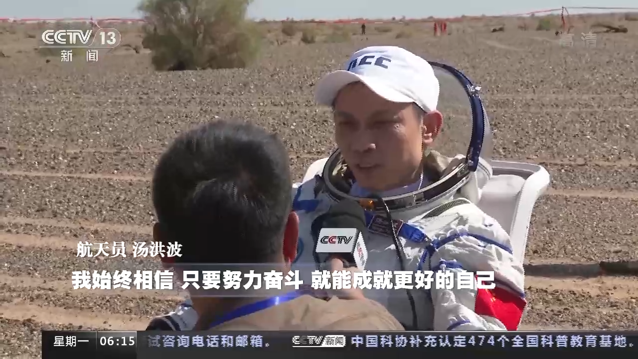 航天员 汤洪波:我始终相信,只要努力奋斗,就能成就更好的自己。