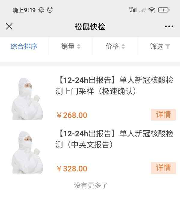 但这些还只是平台优惠后的价格,如果在上述检测服务企业的公众号上下单,有的价格会更贵一些。比如,松鼠快检官方公众号的价格,单人在268元-328元之间,328元/人/次的核酸检测报告给中英文报告。
