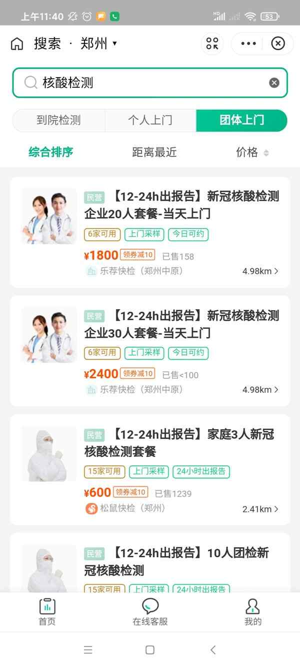 该企业还表示,在郑州封控期间,他们就承担了部分院校、企业的核酸采样工作,价格上是标准核酸检测费用+上门服务费用的计算办法,采样结果就是要送到合作的实验室进行检测。也就是说,对于被检测人员来说,不用担心核酸检测结果能否在平台上显示的问题。
