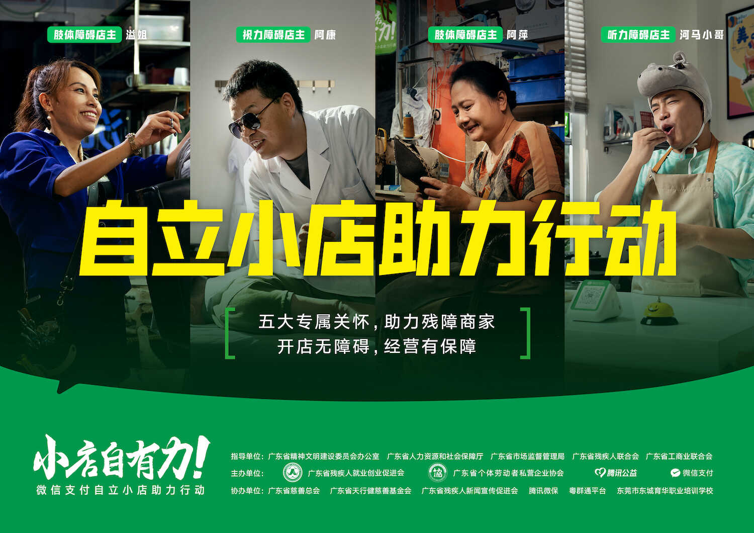 12月8日,在广东省精神文明建设委员会办公室、省人力资源和社会保障厅、省市场监督管理局、省残疾人联合会、省工商业联合会的指导下,微信支付联合广东省残疾人就业创业促进会、省个体劳动者私营企业协会、腾讯公益慈善基金会、省慈善总会、省天行健基金会等机构共同发起“自立小店”助力行动 ——扶残助残精神文明实践活动,将服务广东省约4万个残疾人个体工商户。