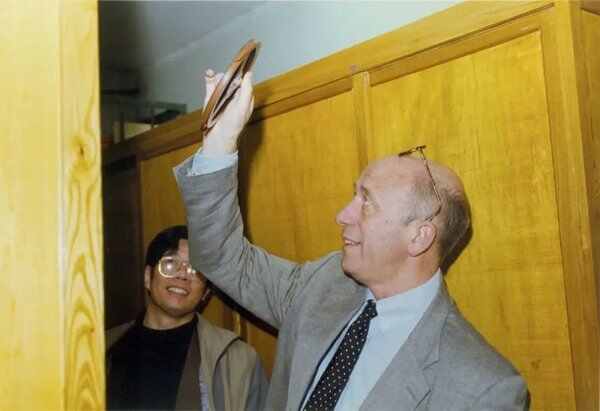 1996年,联合国教科文组织官员、时任奥地利国家科学院音响档案馆馆长迪特里希·舒勒(右)访问音研所,张振涛(左)陪同。