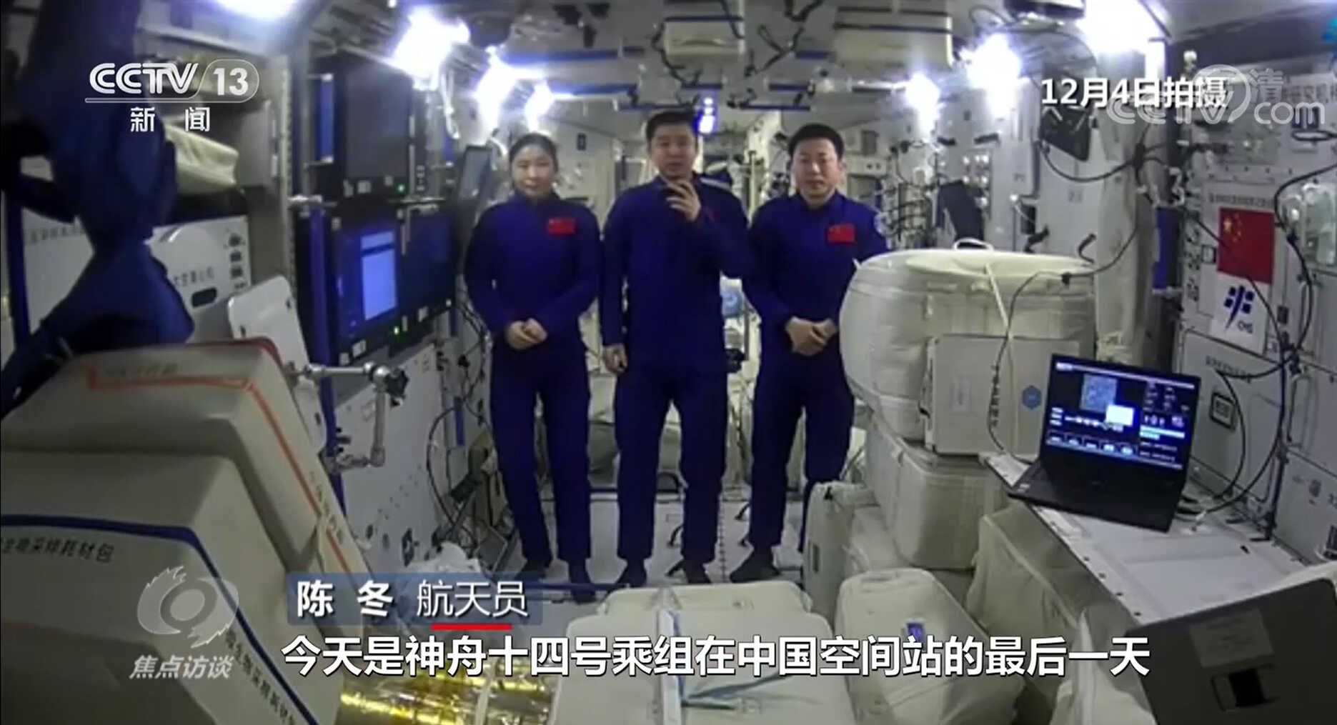 央视网消息(焦点访谈):2022年12月4日晚,神舟十四号乘组成功返回地面,圆满完成任务。此次航天员返回是中国空间站“T”字基本构型建成后的首次返回,也是在东风着陆场的首次冬季夜间返回。自今年6月5日入驻中国空间站以来,三名航天员在轨183天,完成了9种组合体构型、5次交会对接、3次分离撤离和2次转位任务,可以说是空间站任务实施以来的“最忙乘组”,见证了诸多中国载人航天的历史时刻。