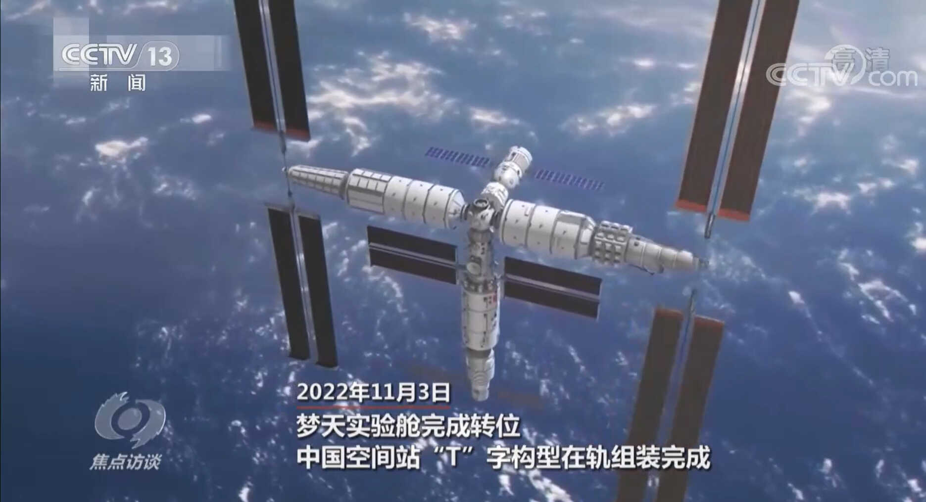 11月1日,梦天实验舱在发射入轨后,成功对接天和核心舱的前向端口。11月3日,梦天舱完成转位,中国空间站“T”字基本构型在轨组装完成。