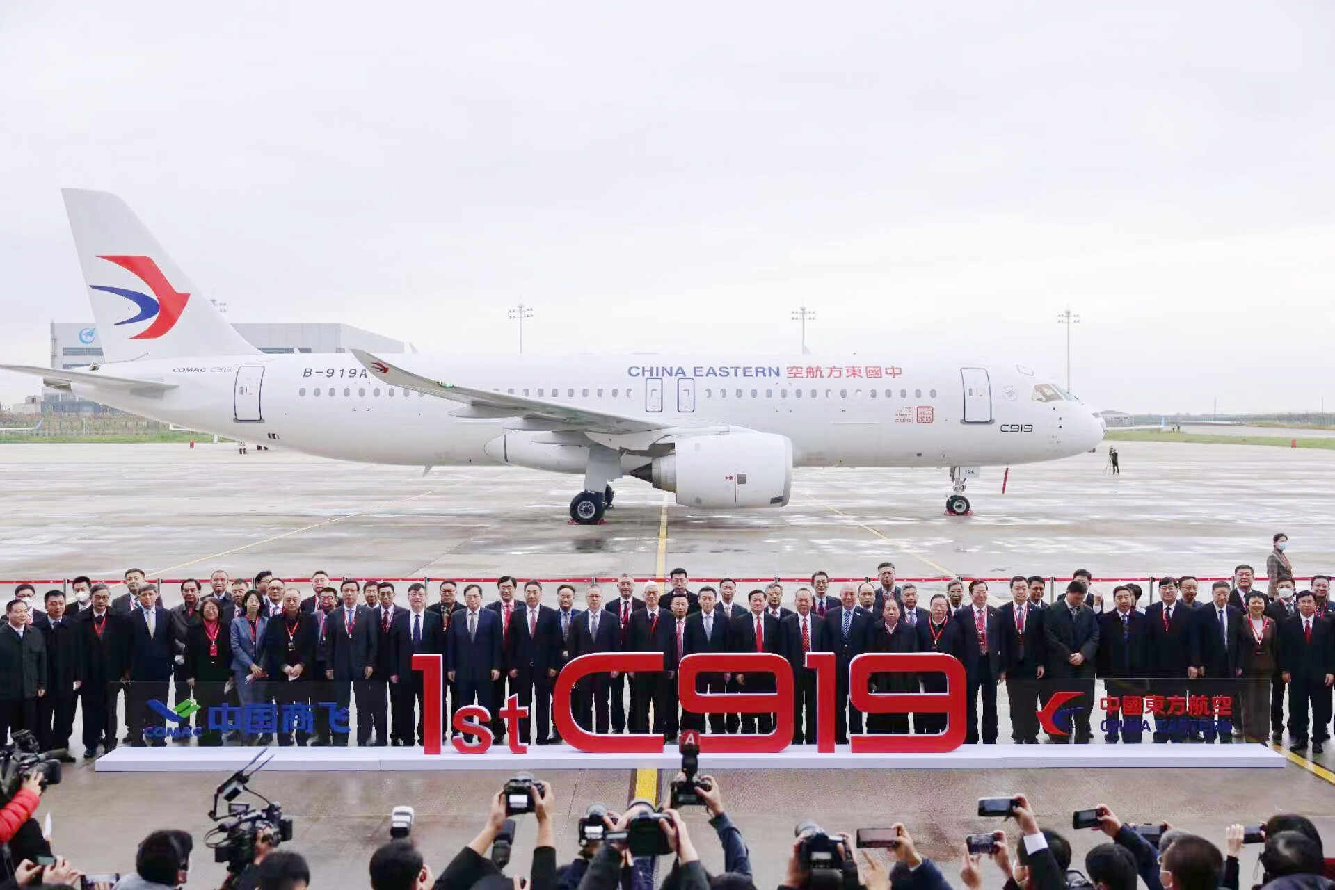 12月9日,中国东方航空作为C919的全球首发用户,正式接收编号为B-919A的全球首架飞机。调机航班号为MU919的上海浦东——虹桥两场间“首秀”飞行,标志着我国大飞机事业发展迎来一个新的里程碑,正式迈出民航商业运营的关键“第一步”。