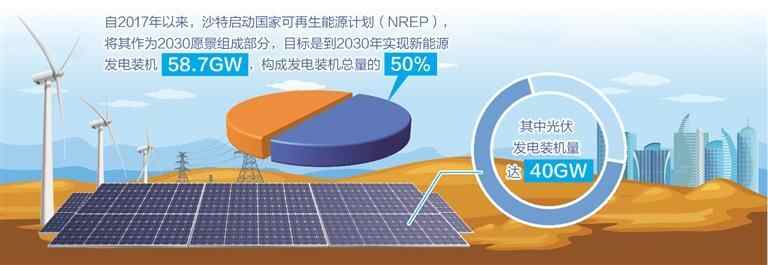 全球清洁能源转型的趋势促使沙特加快能源转型步伐。自2017年以来,沙特启动国家可再生能源计划(NREP),将其作为2030愿景组成部分,目标是到2030年实现新能源发电装机58.7GW,构成发电装机总量的50%,其中光伏发电装机量占新能源之首达40GW。目前,沙特能源部正在进行第四轮的5个新能源项目招标,总装机发电量3300MW。