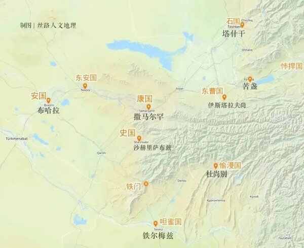唐代昭武九姓诸国示意图。(图片来源:丝路人文地理)