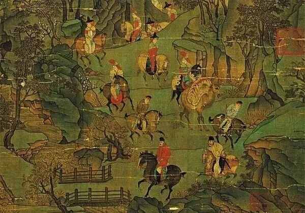 唐李昭道(传)《明皇幸蜀图》,现藏台北故宫博物院。
