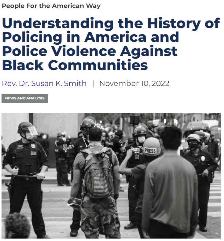 倡导进步的非营利组织“美国人民之路”发表的由苏珊·威廉姆斯·史密斯撰写的文章《了解美国警务史和警察对黑人社区的暴力》
