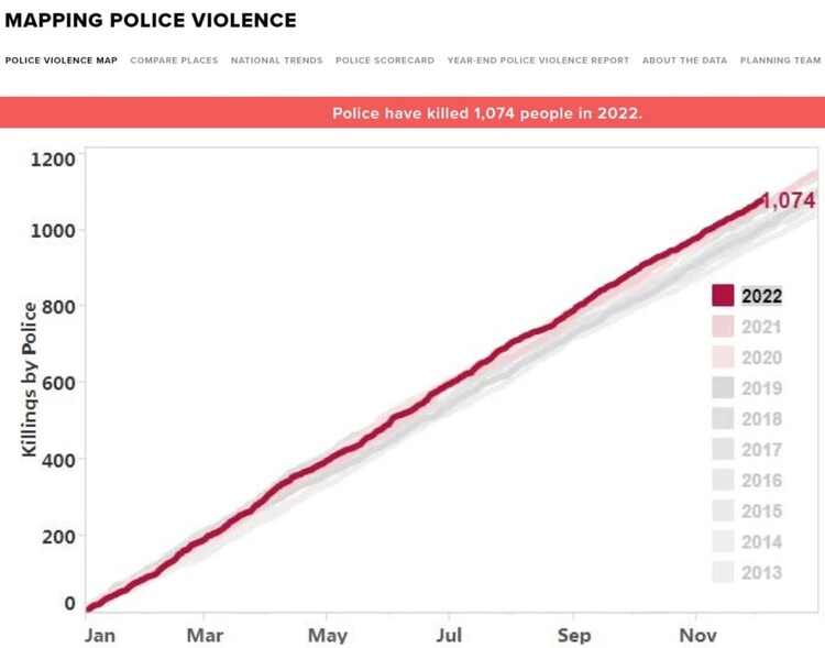 美国“警察暴力地图”网站更新到当地时间12月3日的最新数据显示,今年以来美国警察已打死1074人,超过去年全年打死1047人的纪录。