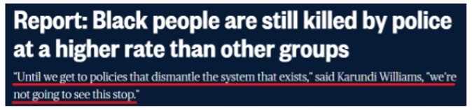 正如美国全国性非洲裔政治培训组织“新权力”首席执行官卡伦迪·威廉姆斯所说,美国警察和司法体系不是为了保护非洲裔而建立的。
