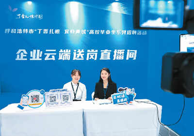 在内蒙古自治区呼和浩特市“丁香扎根 宜业青城”高校毕业生系列招聘活动现场,招聘单位工作人员进行线上招聘。丁根厚摄(人民图片)