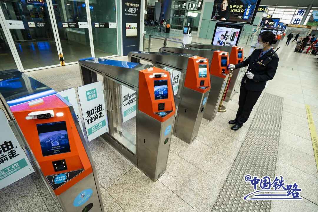 车站进出站口设有红外测温仪,旅客经过“无感测温”后,可快速有序进出站。