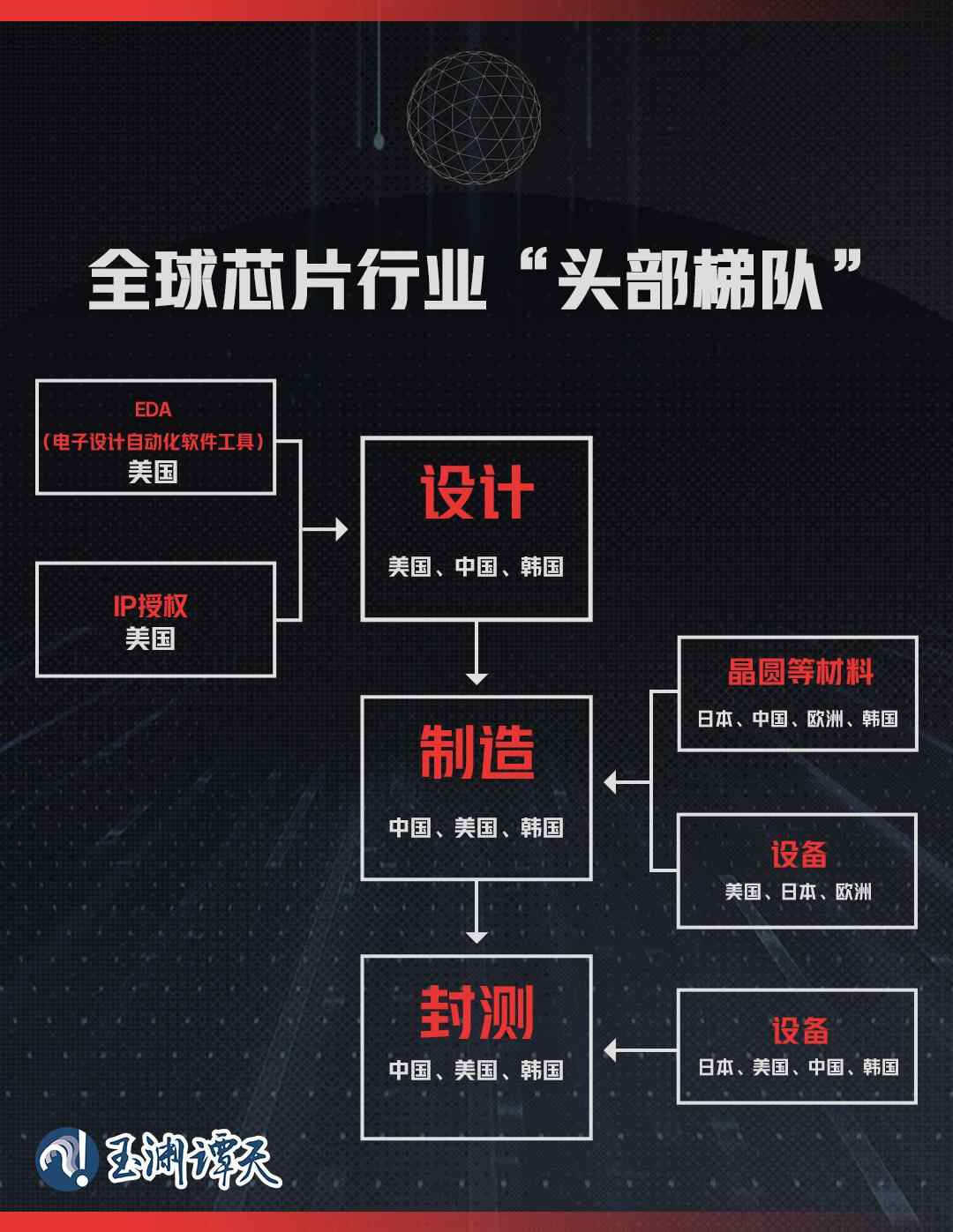 这是谭主总结的,全球芯片行业各个环节的“头部梯队”。