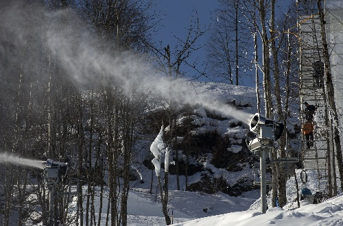 为应对暖冬带来的雪荒,索契组委会在赛场附近修建大型储雪设施,储雪量达到45万立方米,仅此一项便多花近4600万元。此外,更从美国、中国、瑞士购入500套造雪设备,利用附近的水力资源,随时把9万立方米的水变成雪,足以把500个足球场覆盖0.6米厚度的比赛用雪。