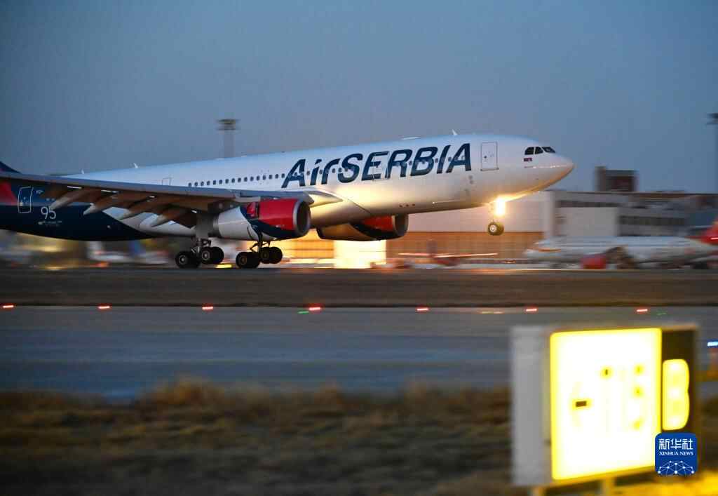 当日,搭载约170名旅客的JU702航班在天津滨海国际机场顺利落地,标志着“贝尔格莱德-天津”直飞航线正式开通。