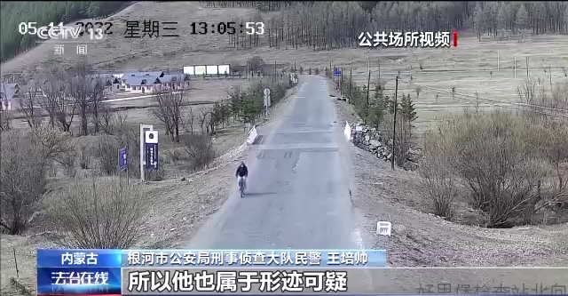 原来,犯罪嫌疑人在出城的过程中,途径了当地的根河一桥,而这位老人当时把自行车停在了桥上,自己在附近干活,回来后却发现车丢了。民警怀疑,犯罪嫌疑人很有可能在逃跑过程中临时起意,盗走了老人的自行车。于是,警方根据这一猜想,对根河一桥周边的公共场所视频进行了调取。