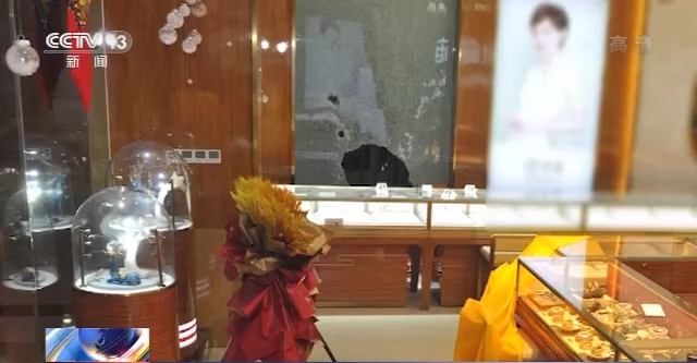 抚州市公安局高新分局网安大队大队长 邱苑峰:现场一片凌乱,整个放金子的(柜台)玻璃全部都被砸碎了。