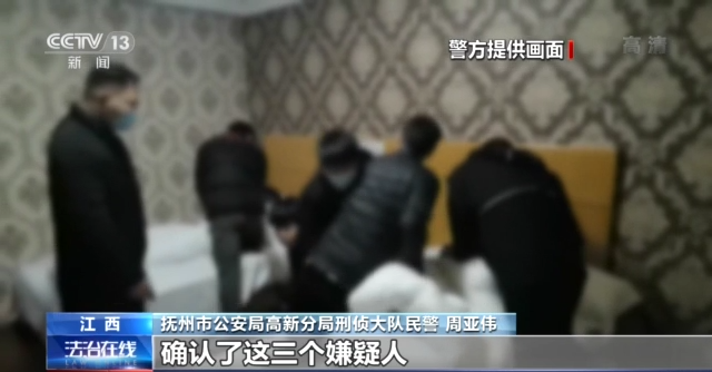 根据司机提供的信息,抚州警方连夜前往浙江省东阳市,在当地警方的协助下,发现三名犯罪嫌疑人入住了当地的一家宾馆,并且据宾馆工作人员反映,三人入住时携带了一个背包。