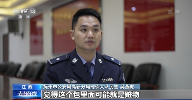 抚州市公安局高新分局刑侦大队民警 吴燕虎:他们身上还背了一个包,我们当时比较振奋,觉得这个包里面可能就是赃物,因为他随身不离,我们觉得赃物应该大概率还在他们身上。